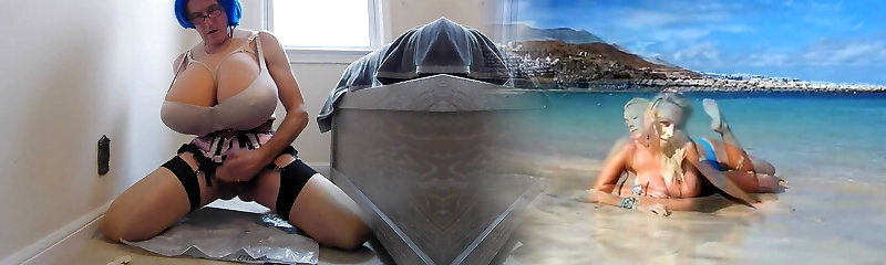 Lusty fat boobs shemale in lingerie masturbates her big cock