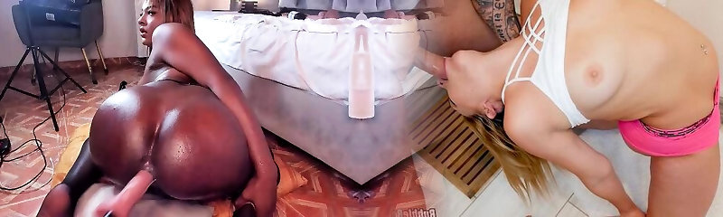 Travesti loira gozando para o namorado