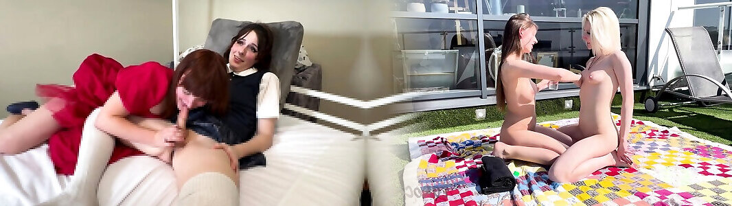 Exotic she-male with uber-cute boobs gets her rock hard dick deep throated by milky dude then nails