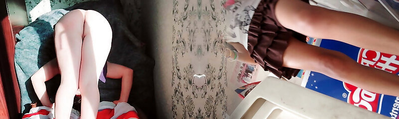 Sexy as hell petite ladyboy Rainne strips her brief and cute dress to get naked and play with her firm little cock